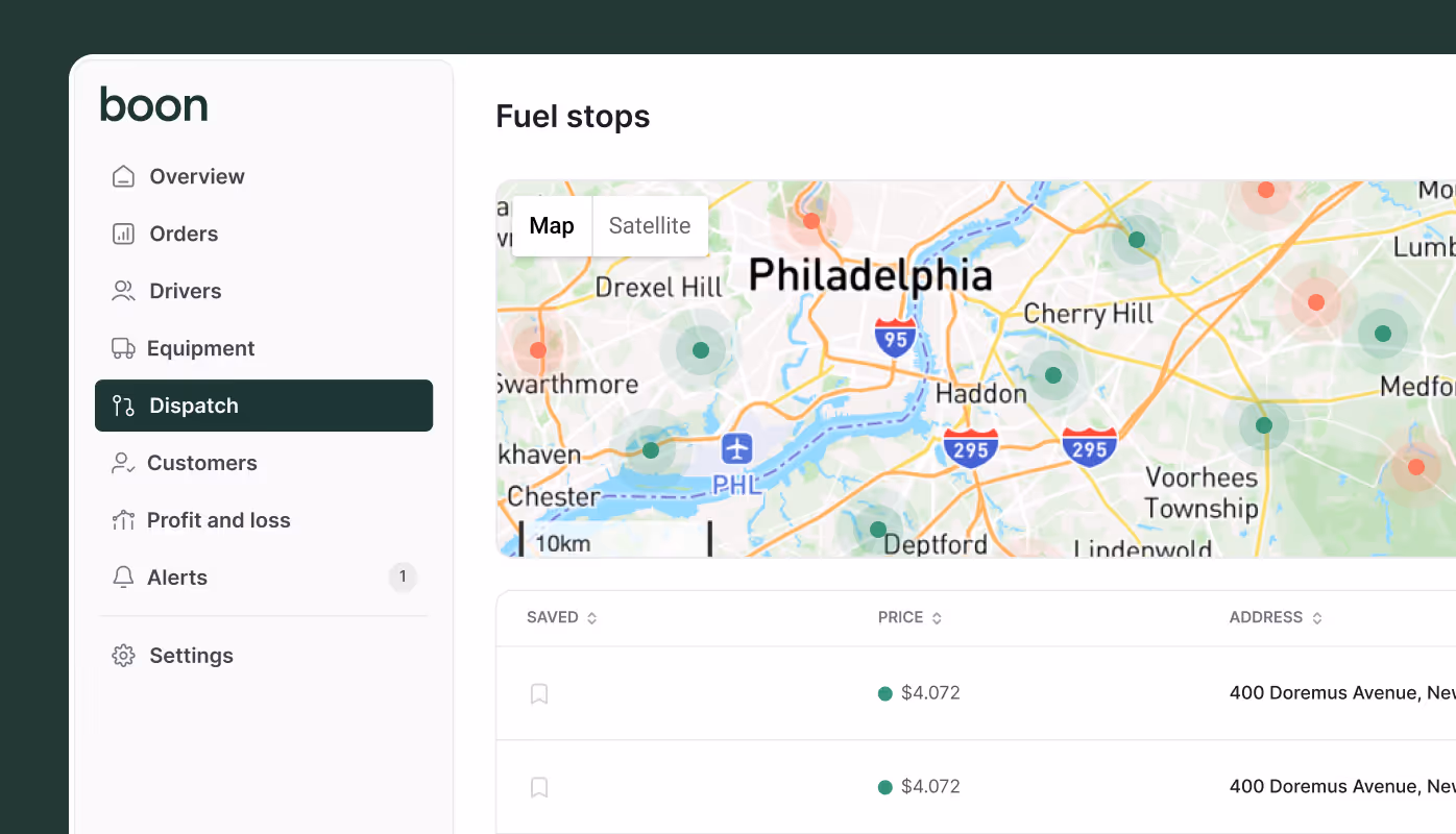 "With its Fuel Recommendations product, Boon helps us select the lowest cost in-network fuel stations on our drivers' routes. On average, we save about $7.40 per truck per day on fuel. Beyond optimizing for fuel expenditure, Boon's recommendations minimize driver choice and reduce back-and-forth communications with our drivers."