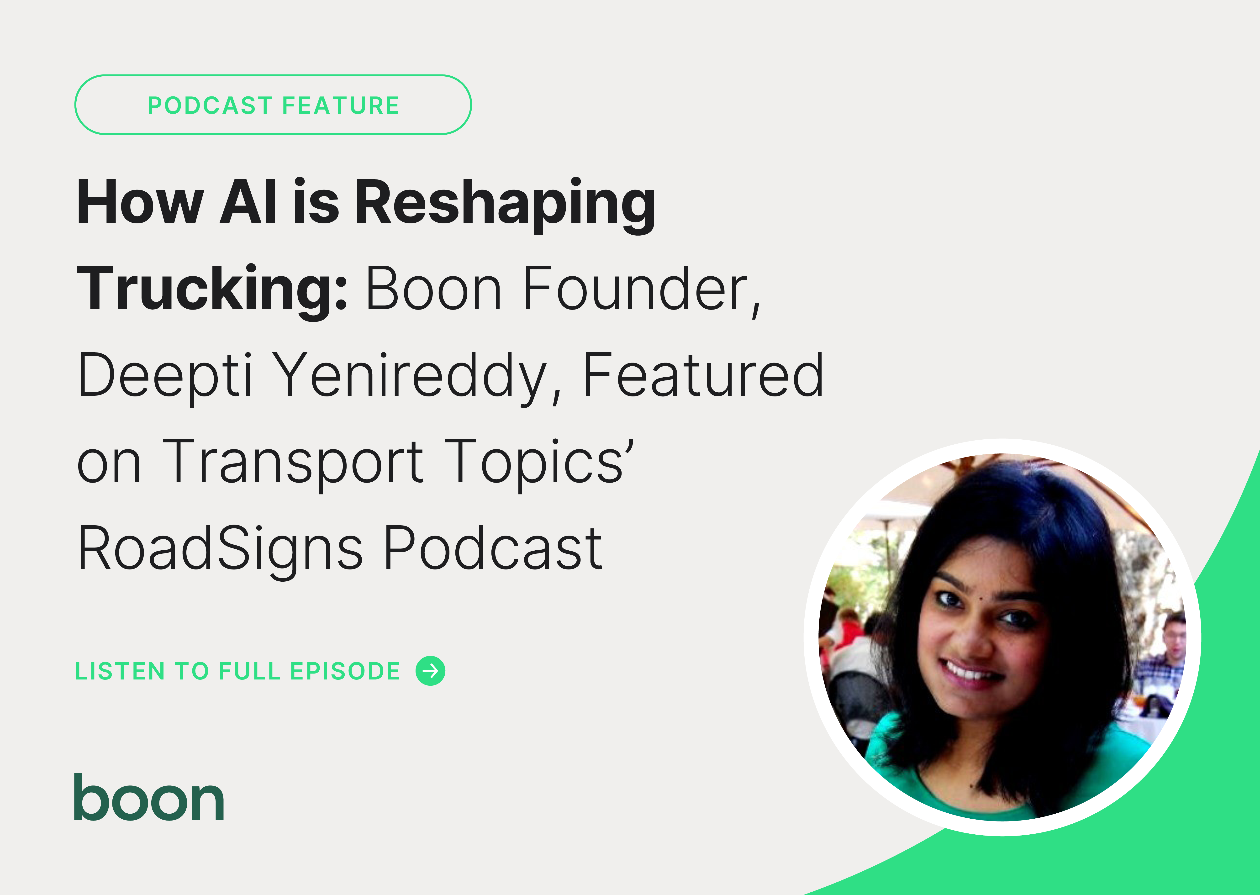 How AI is Reshaping Trucking — Boon.ai Founder, Deepti Yenireddy, Featured on Transport Topics’ RoadSigns Podcast