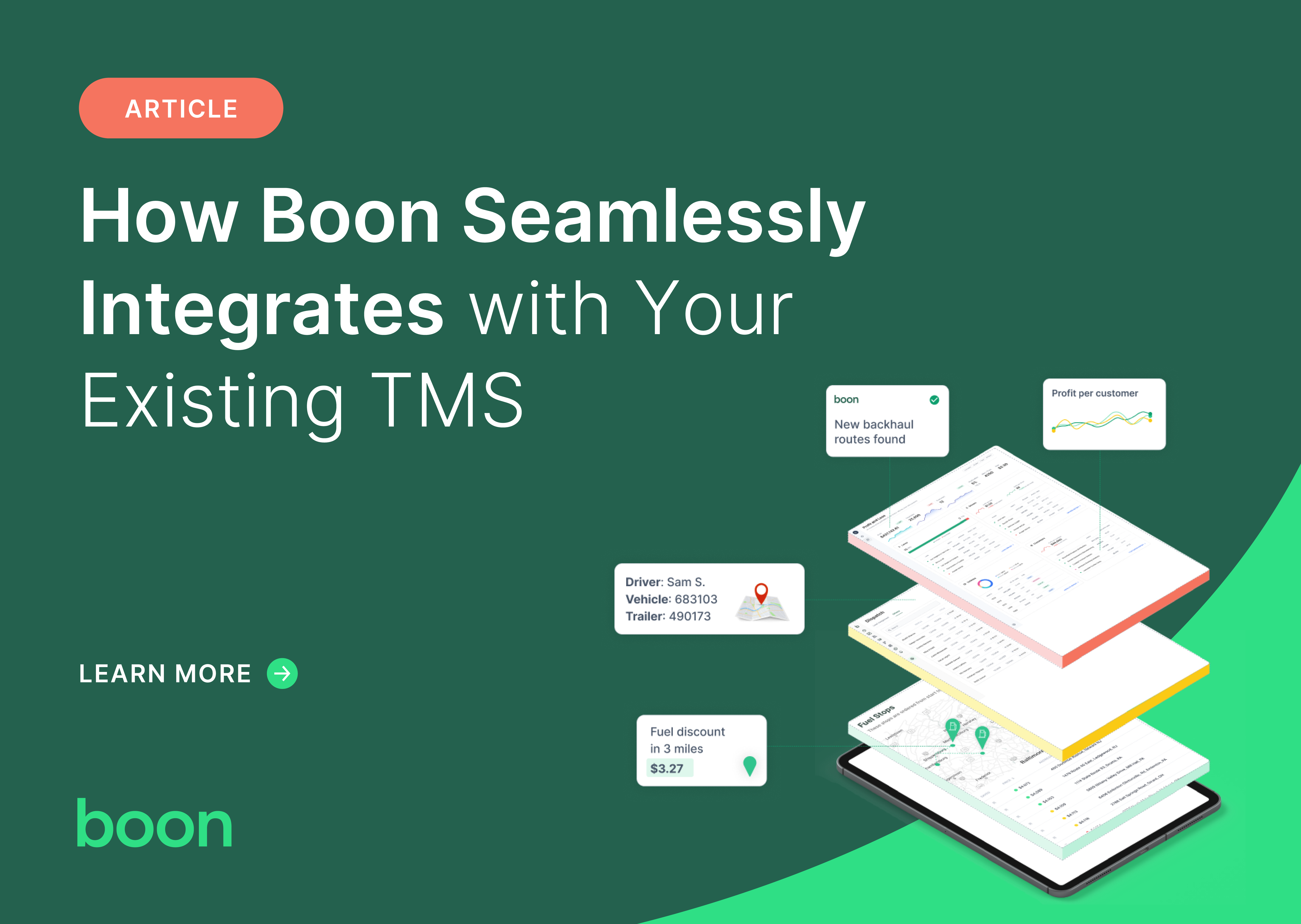 Beyond addressing immediate integration challenges, Boon’s scalable solutions allow trucking companies to continue growing and meeting customer demands. Boon’s comprehensive platform helps maximize existing investments, TMS or otherwise, and frees up employees to focus on scaling business by building new client relationships and exploring opportunities for growth.