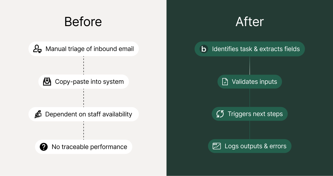 We take those realities seriously. That’s why we work closely with each partner to define what an outcome means in their specific context. Some are straightforward, a shipment entry logged correctly, a quote booked, a call successfully answered. Others are more nuanced, like resolving a customer inquiry that would normally escalate to a second-line support call. In those cases, we ensure clarity upfront and, when escalation is required, there’s typically no charge.