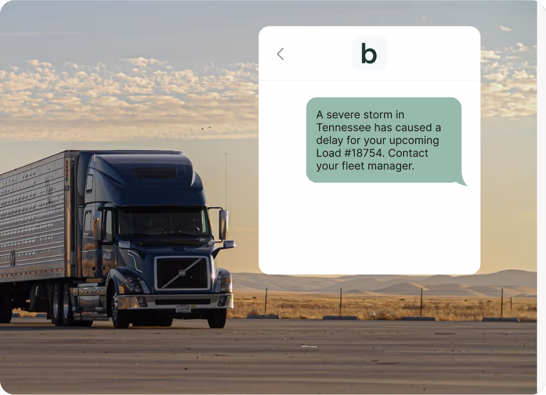 Configure your real-time alerts to notify your customers when your shipments will be delivered or delayed in real-time leveraging Boon's connection to your telematics provider