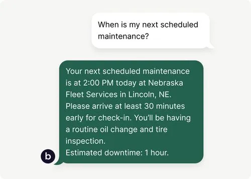 Boon's AI workers can look up information across your systems and provide quick answers and updates to your drivers and customers via voice, text, or email–24/7.