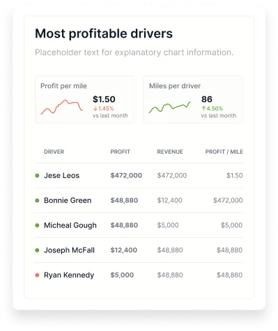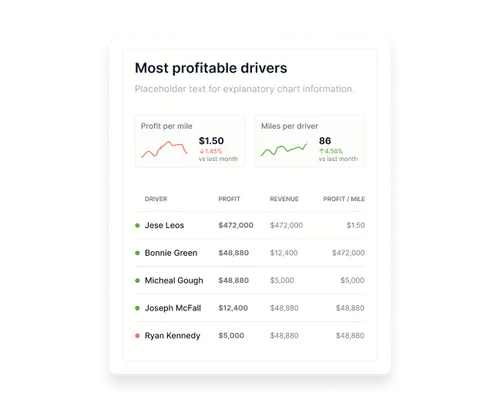 See which drivers are earning the most per mile and reassign loads to maximize profit and recognize and retain top talent.